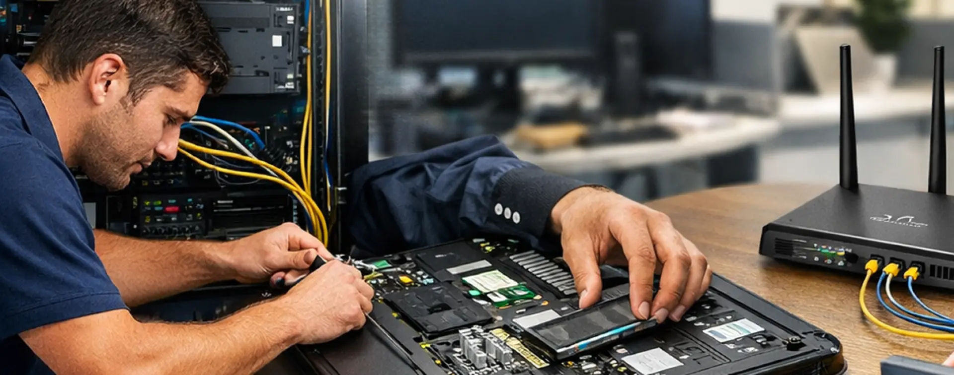 On-Site IT Support is a field service where an IT engineer visits your office or business location in Abu Dhabi to diagnose, repair, install, configure, or improve your IT systems. It covers both urgent incidents and planned visits, such as new device installations, office changes, upgrades, and performance improvements.